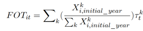 (3)由于生产率和出口之间可能存在逆向因果关系,即若部分产品出口极速增长,将对企业出口关税的度量造成影响,本文采取固定权重测度关税的方法解决。