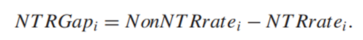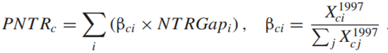 在此基础上,本文以1997年为基准年,通过加总各个行业层面的NTR差距来衡量每个城市的贸易自由化暴露程度,并根据每个城市在每个行业出口份额进行加权。具体指标和行业出口份额计算方法如下: