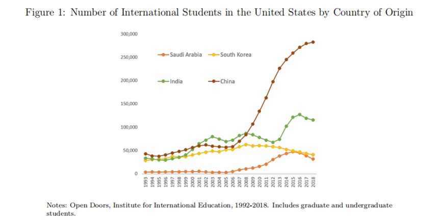 本篇文章研究了美国的商品贸易逆差如何通过美国教育服务的出口形成循环顺差,首次证明了中国贸易扩张是决定中国赴美留学生人数增长的关键因素。由此,美国政府单纯从贸易逆差的角度来指责中国的说法是十分片面的。