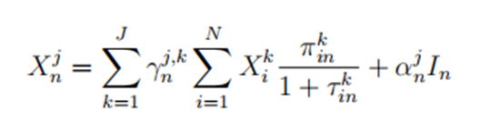 商品j的总支出等于企业对复合中间品的支出与家庭对最终品支出的总和,总最终收入In包括劳动收入、关税收入Rn以及贸易赤字Dn。