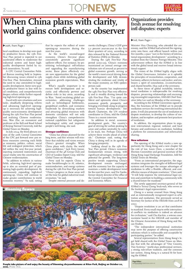 As the country has implemented the 14th Five-Year Plan very effectively and is steadily driving toward the 15th Five-Year Plan, "I'm quite confident and optimistic about China's economic growth, prosperity, and bringing everybody along to progress toward human development," Siddharth Chatterjee, the UN resident coordinator in China, told the Global Times in a recent interview.