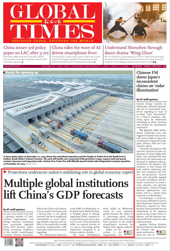 As year 2025 comes to an end, a growing number of international organizations and foreign financial institutions have successively upgraded China GDP forecasts, underlining increasing confidence in the world's second-largest economy. Chinese economists believe that China will continue to be an anchor of certainty and a driving force in the global economy that faces heighted uncertainties in 2026, injecting valuable certainties and stability to the world with its solid economic fundamentals, sufficient policy tools and structural upgrading.