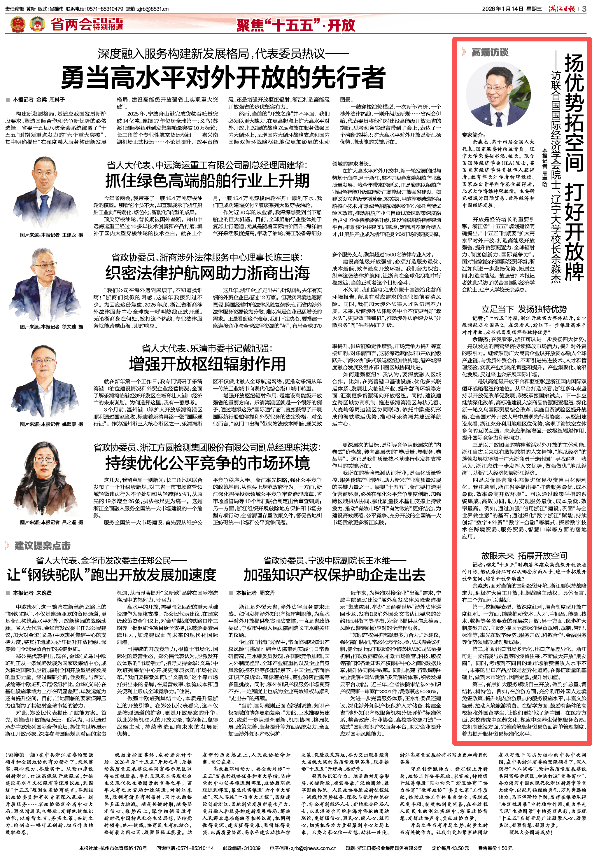 记者:锚定“十五五”时期基本建成高能级开放强省的目标,您认为浙江可以从哪些方面入手,进一步拓展开放新空间、培育开放新动能?