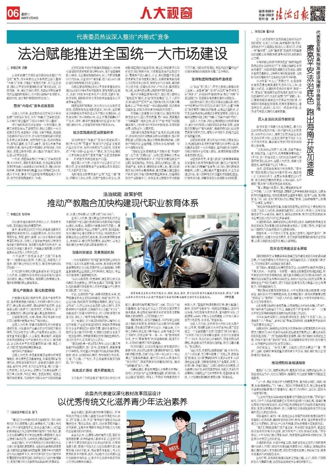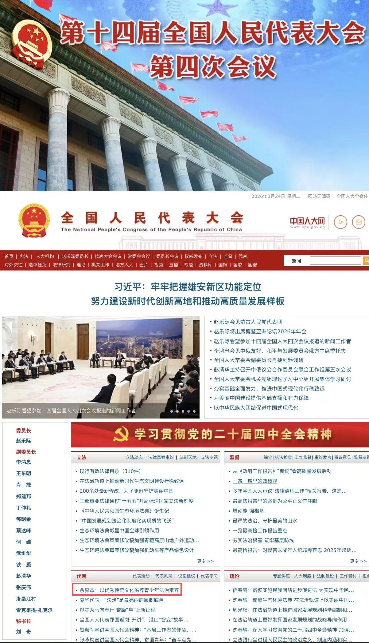 在十四届全国人大四次会议期间,如何更好落实立德树人根本任务、培育时代新人成为代表委员们热议的焦点。近日,全国人大代表、辽宁大学校长余淼杰关于“将中华优秀传统文化深度融入法治教育体系”的建言,重磅登上了全国人大网首页。