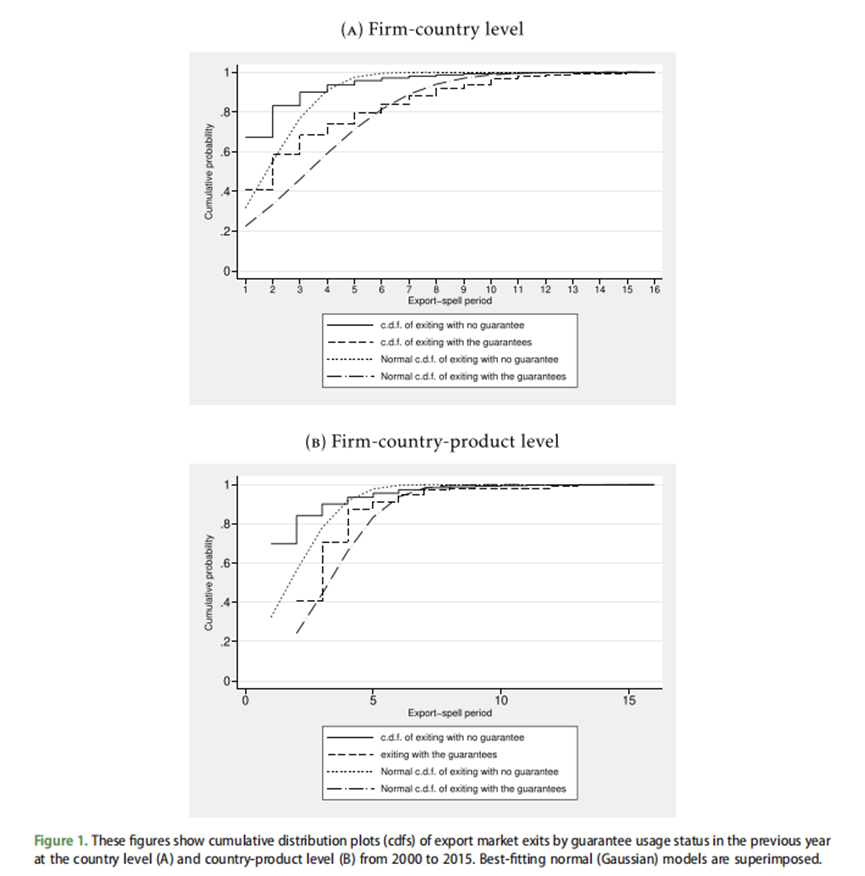 企业在进入国际市场后往往难以长期维持出口活动,大多数贸易关系在2至3年内便会终止。尽管出口市场进入受到较多关注,但出口生存同样至关重要,因为即使生存率的微小差异也可能对长期出口增长产生显著影响。然而,已有研究对哪些因素能够有效延长企业出口持续时间的探讨仍较为有限。出口信贷担保作为一种由政府或相关机构提供的出口信用保险工具,旨在为出口企业规避因国外买方违约所带来的政治风险和商业风险。此类担保在发达经济体和发展中国家均被广泛使用,尤其是在全球金融危机和COVID-19大流行期间,各国政府进一步扩大了担保规模,以缓解企业面临的流动性约束和市场不确定性。
