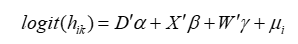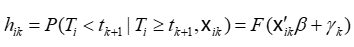 其中,被解释变量hik是条件风险率,定义为在某段出口关系已经持续至第k期的条件下,其在第k期退出的概率,即:
